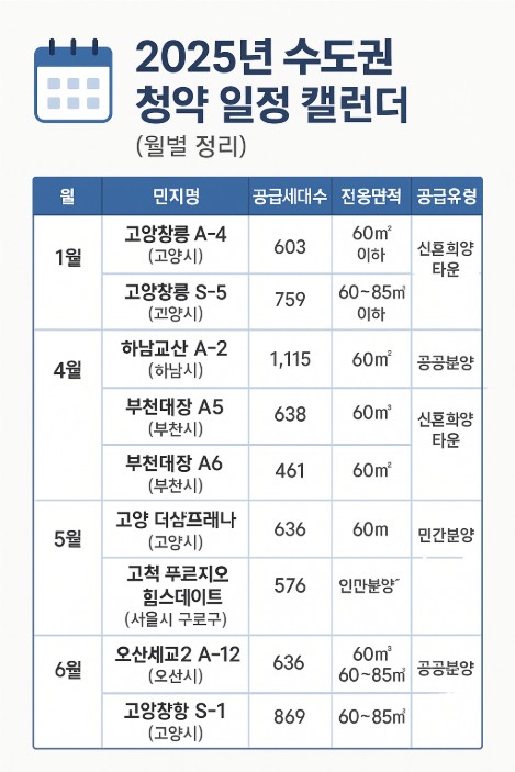 🗓️ 2025년 수도권 청약 일정 캘린더 (월별 정리)